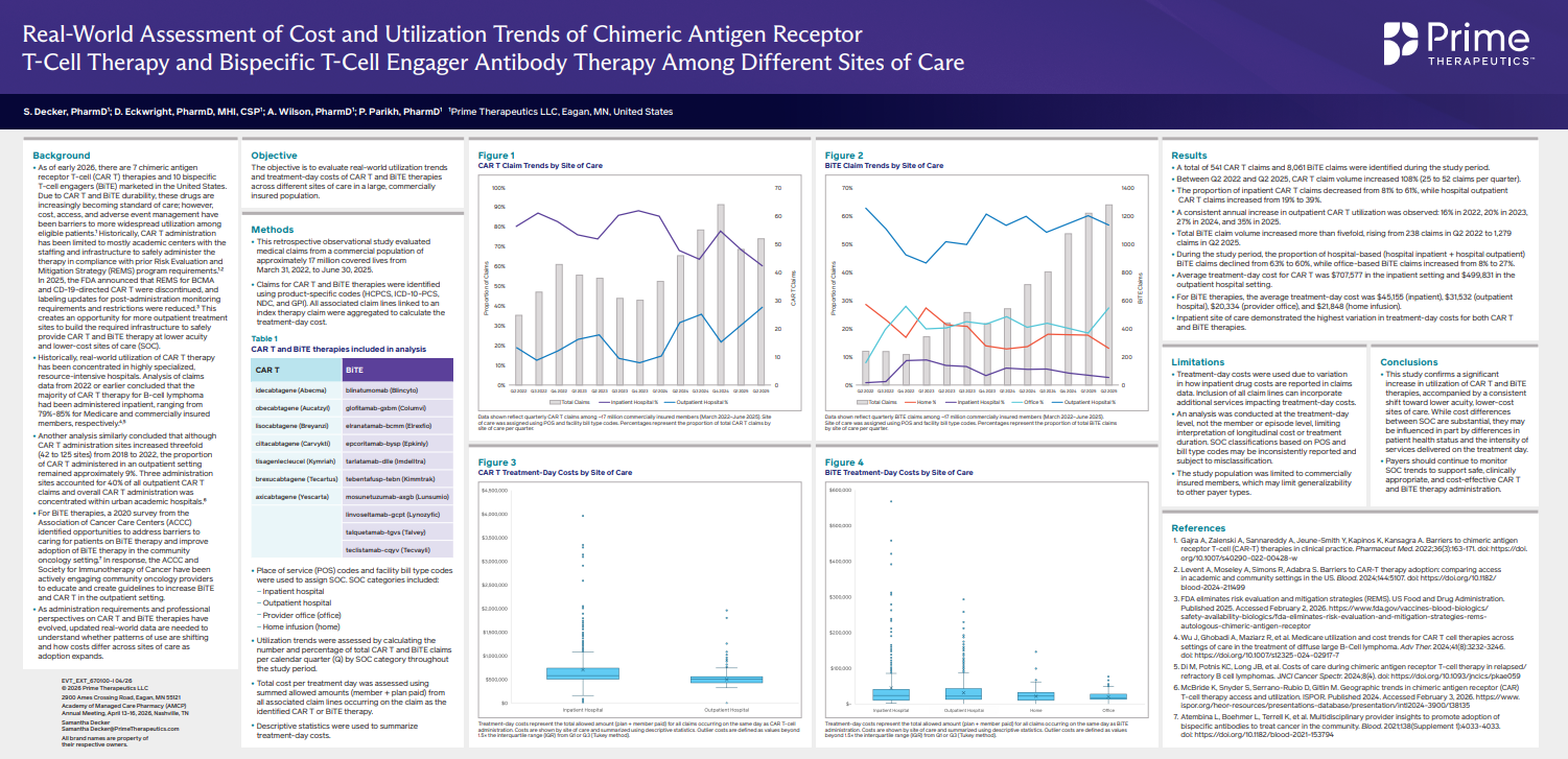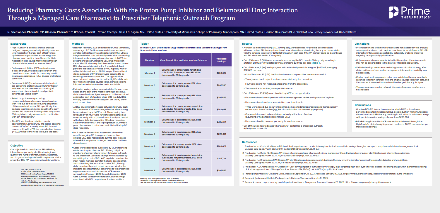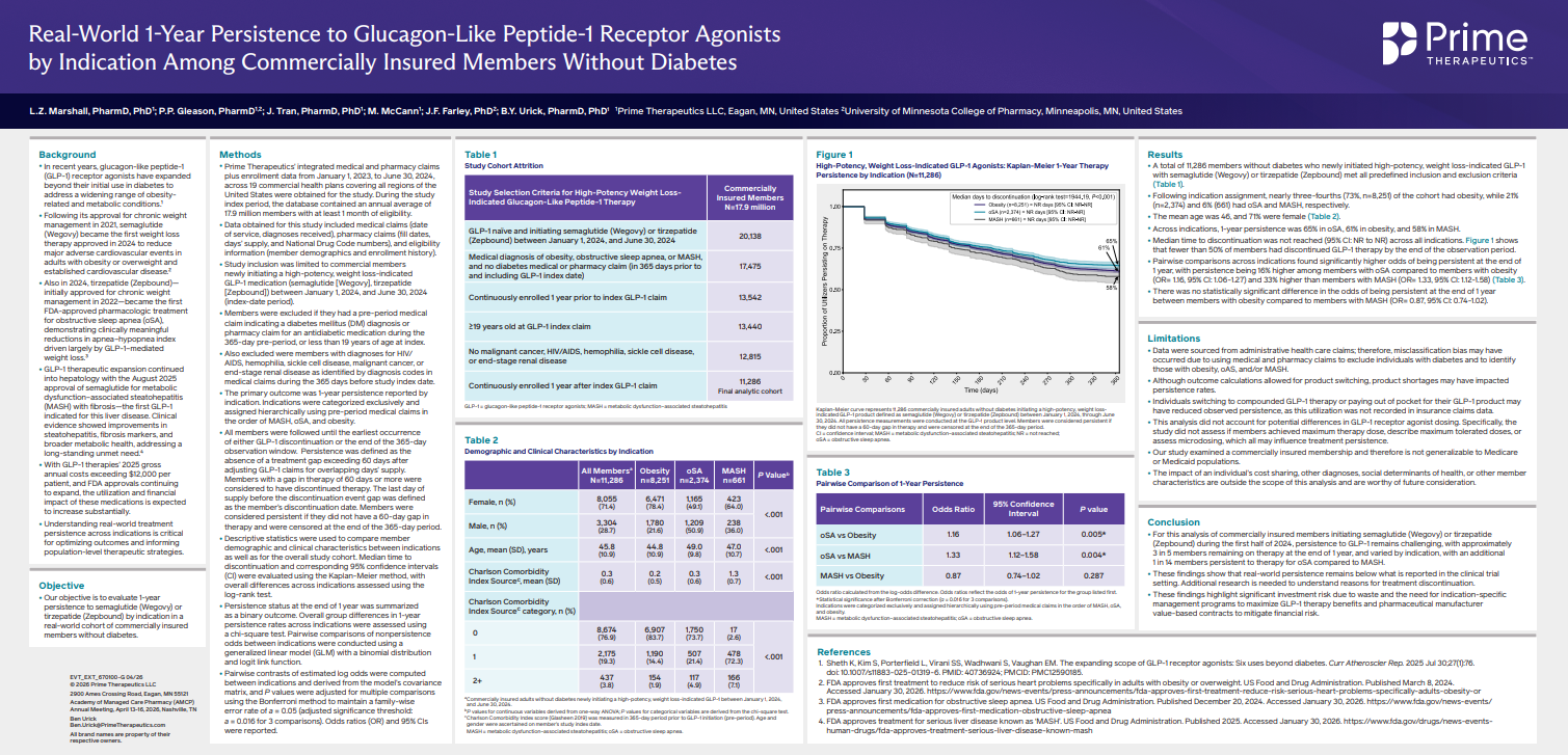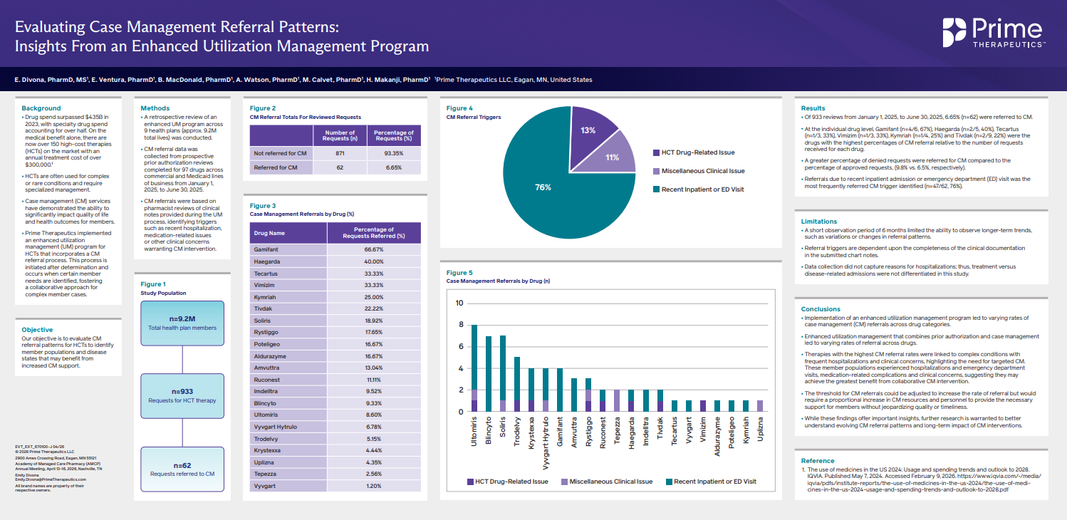 At Prime Therapeutics (Prime), clinical and health outcomes research is foundational to how the organization provides stronger clinical judgement to health care payers. By evaluating real-world evidence on how therapies are used, where gaps exist and which patients benefit most from additional support, Prime translates its expertise into smarter clinical strategies and less patient navigation friction. This evidence-based approach helps clients make informed decisions, strengthens program design across complex conditions and reinforces Prime’s position as a trusted partner committed to improving access, affordability and health outcomes by guiding patients through the moments in care where clinical insight and care support matter most.