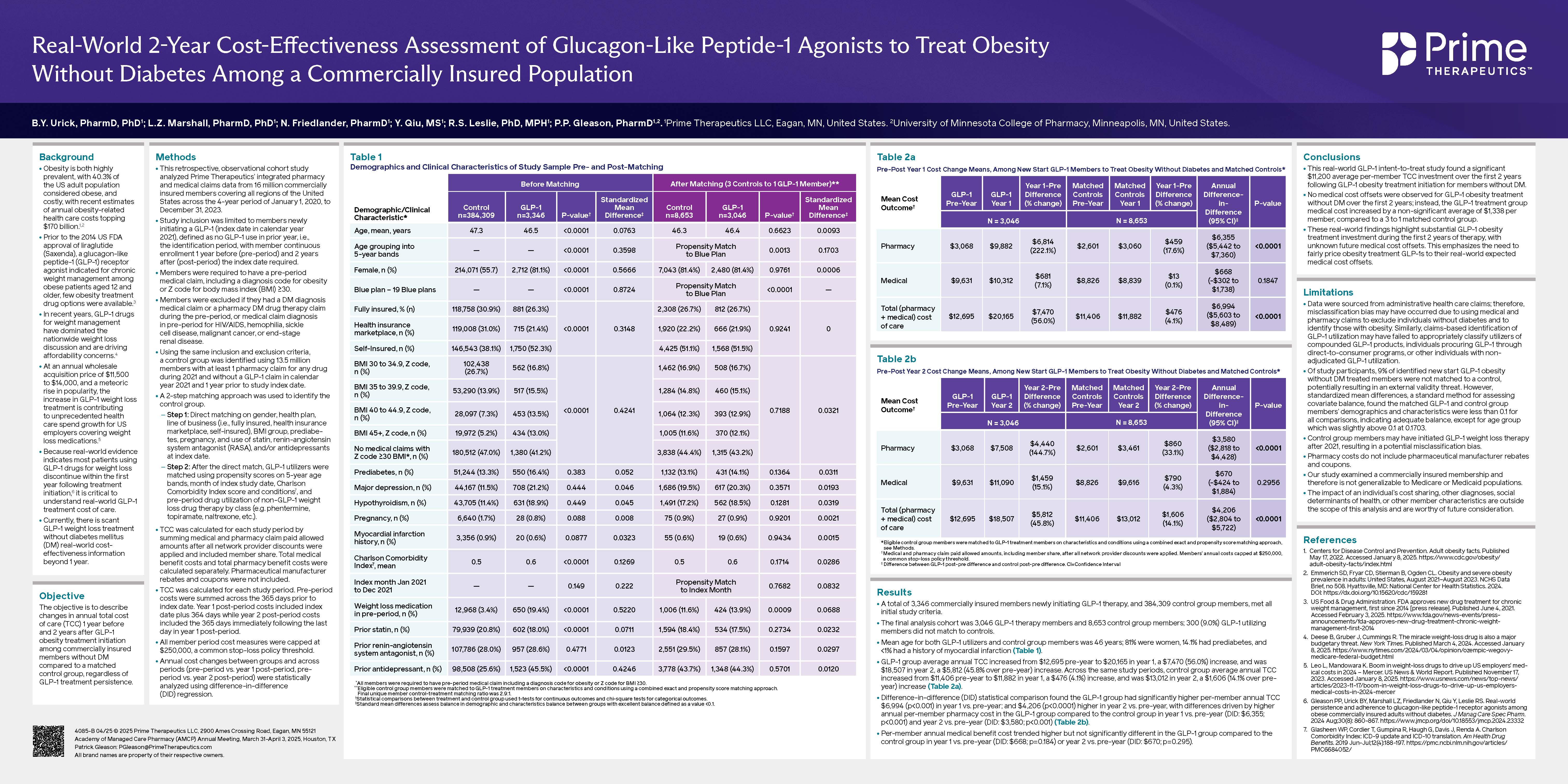 Studies include Prime’s GLP-1 obesity research and a Medicare drug cost predictive model