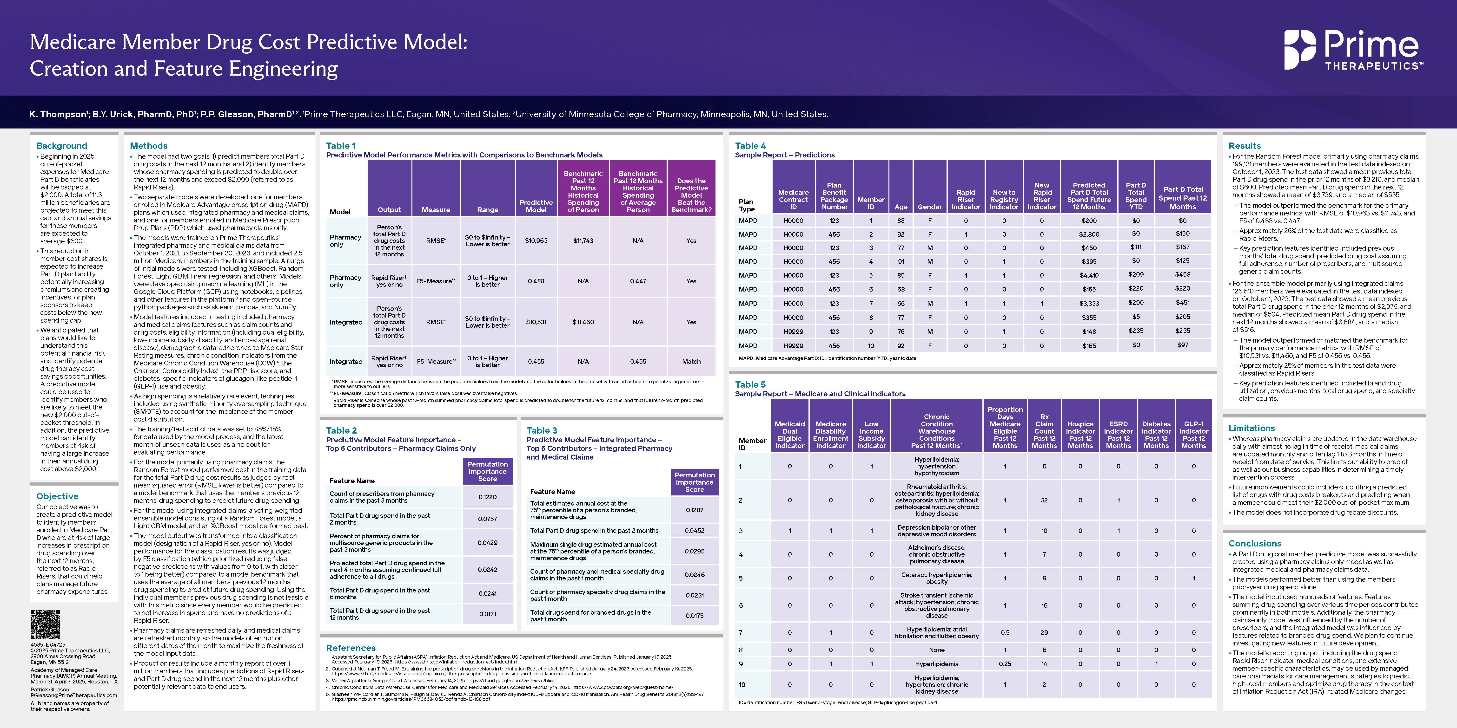 The recipient of a silver award, this study creates a predictive model to identify members enrolled in Medicare Part D who were at risk of large increases in prescription drug spending over a 12-month period.