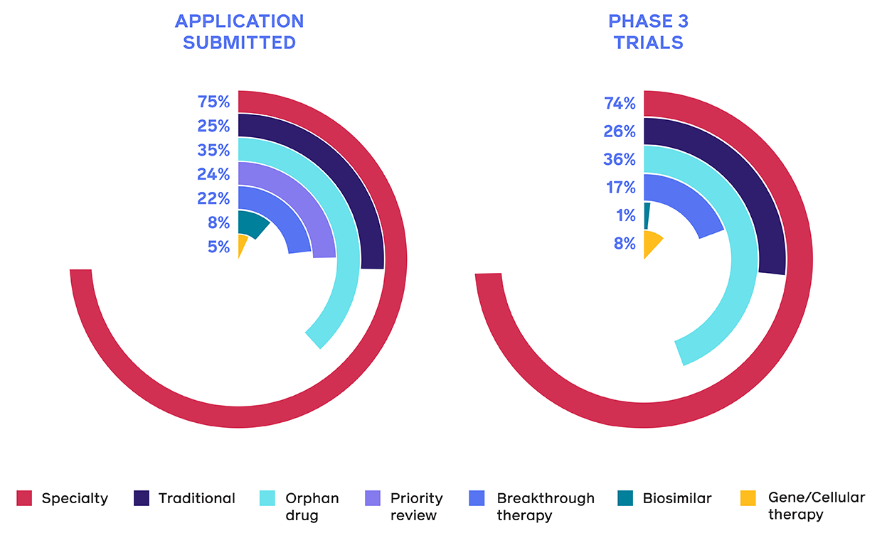 The FDA decisions for specialty medications (75%) and for Orphan Drugs (35%) continue to grow for agents with applications submitted to the FDA. Four agents submitted to the FDA are seeking FDA’s Accelerated Approval, which allows for earlier drug approval for serious conditions that fill an unmet need based on a surrogate endpoint reasonably likely to predict a clinical benefit.